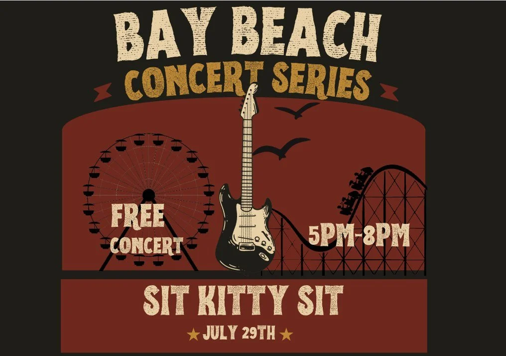 Sit Kitty Sit and cold beers on July 29. Join us 5PM to 8PM at Bay Beach Amusement Park!