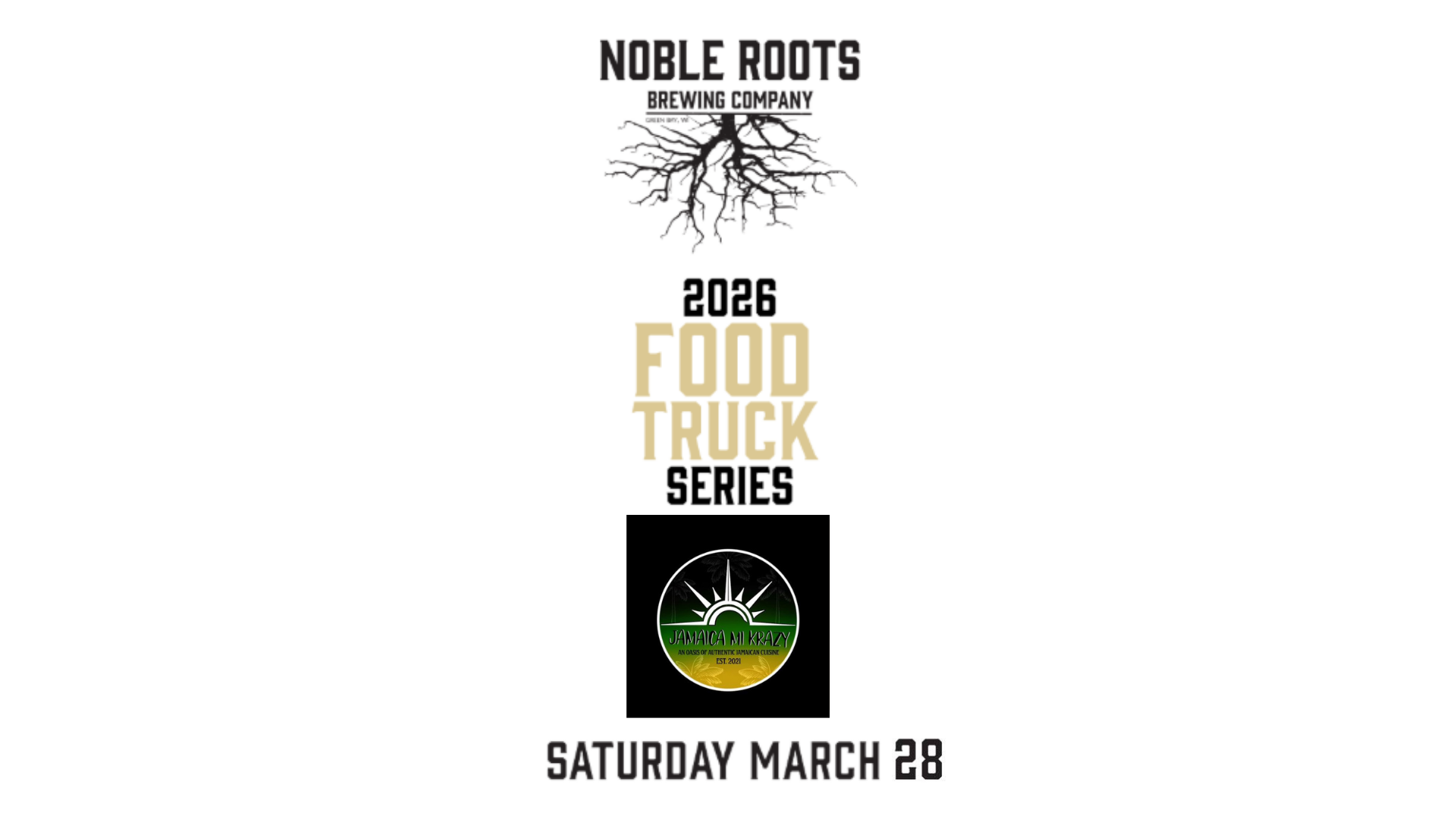 Join us on Saturday, March 28th for some Jamaican cuisine by Jamaica Mi Krazy 4-8pm.